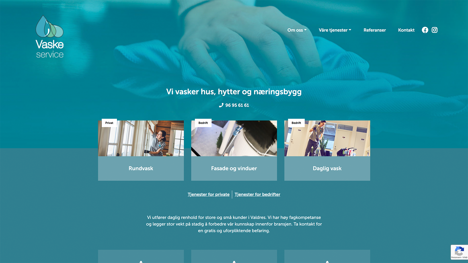 Nettsider for Vaskeservice Valdres AS
